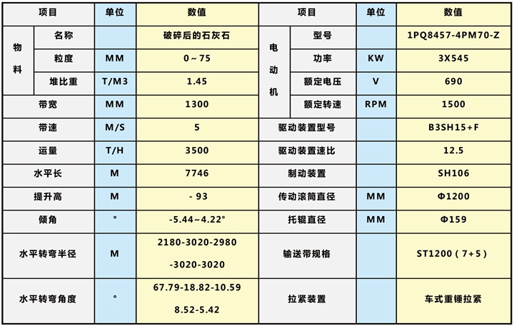 2、采用大托辊直径178mm,大托辊间距,上带面3m,下带面6m。